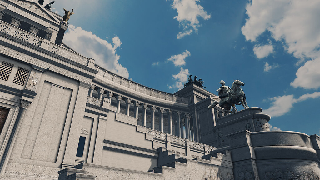 Проект был разработан Джузеппе Саккони в ампирном духе древнеримской архитектуры. Строительство продолжалось с 1885 по 1935 годы (нифиговый такой долгострой). Частью монумента является двенадцатиметровая бронзовая конная статуя короля. Под ней находится могила Неизвестного солдата, так называемый «Алтарь Отечества» (или Altare della Patria, как в оригинале).