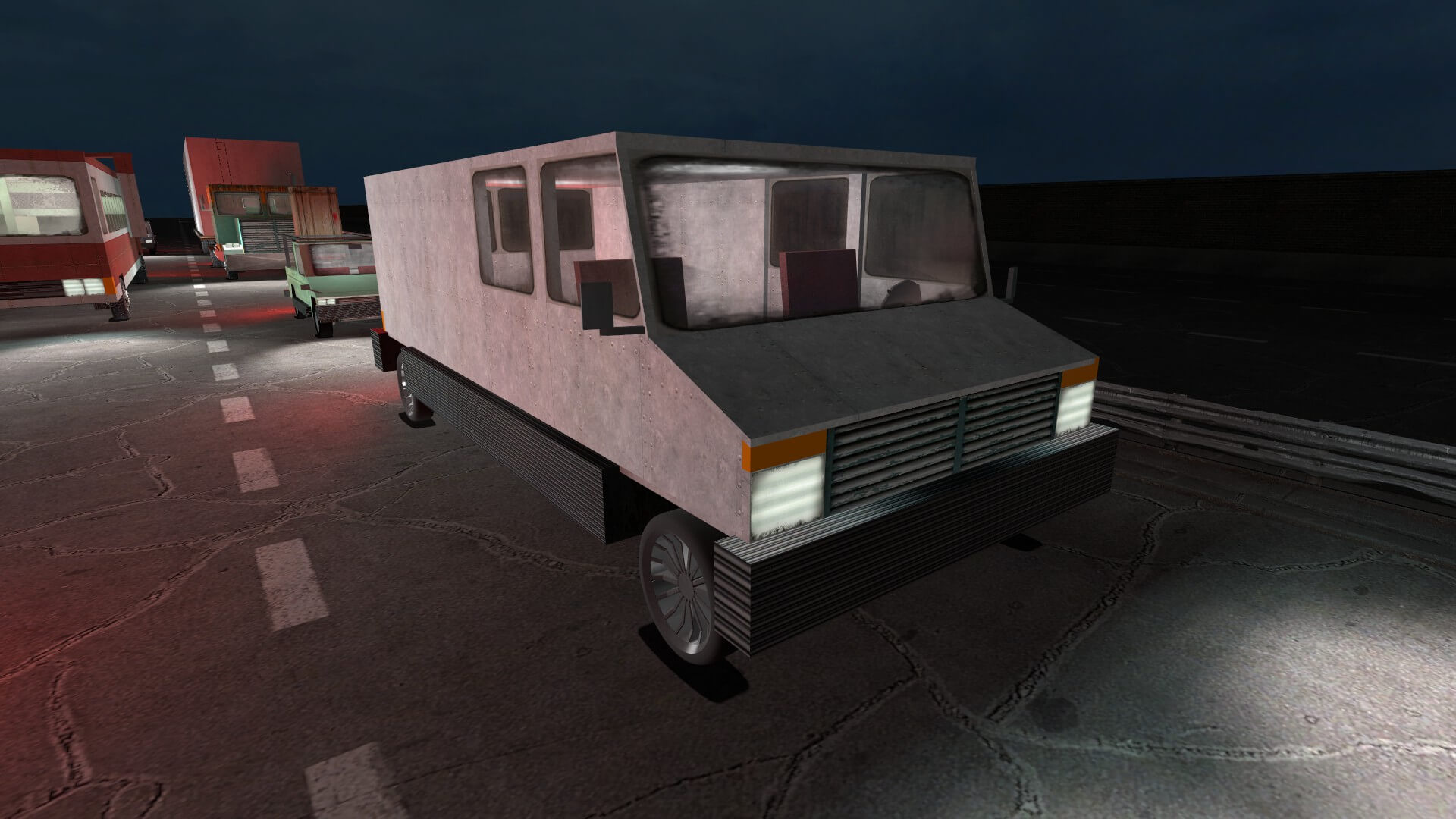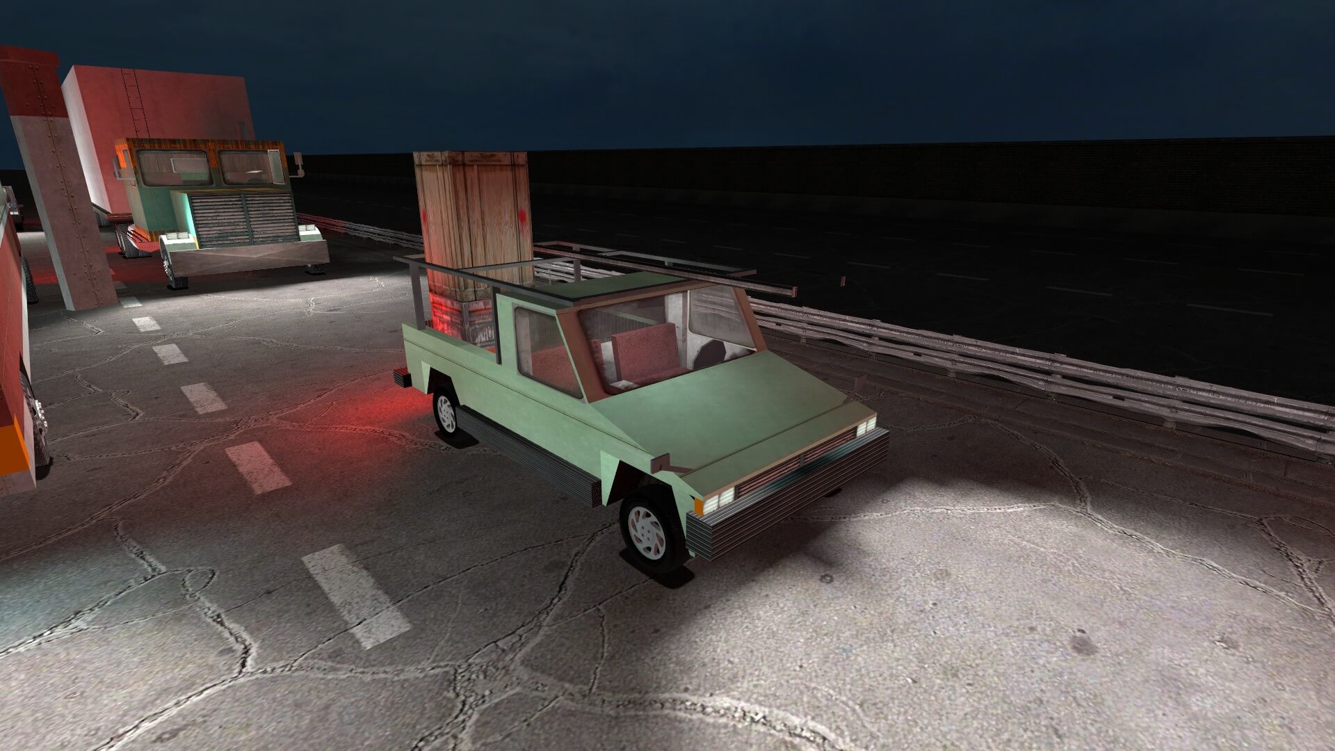 Автострада между штатами в ночное время с движущимися транспортными средствами, на которых вы можете паркурить. Только постарайся не упасть!