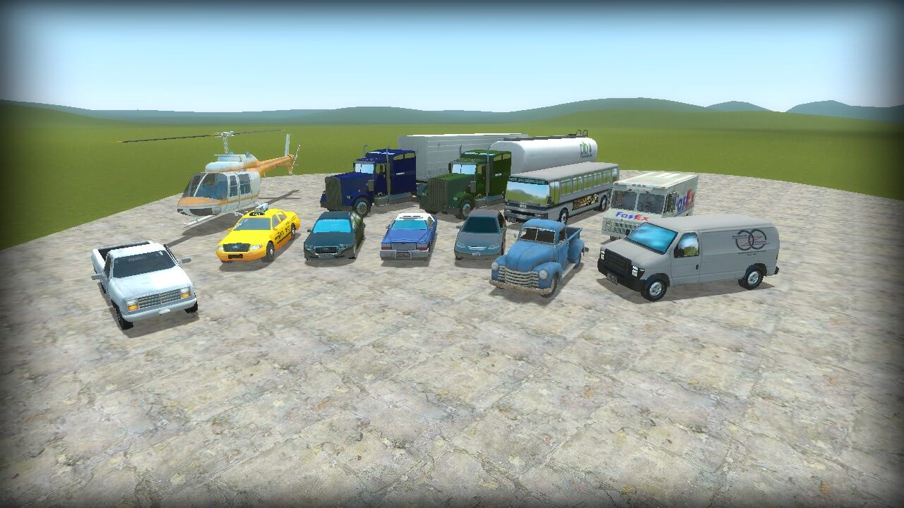 Совсем скоро мы вытащим вообще все модельки из No More Room In Hell. На этот раз к нам на сайт попал всевозможный транспорт, который можно было видеть в игре. Небольшие машинки, такси, грузовики, а также паровоз, вертолёт и какой-то танкер, вроде.