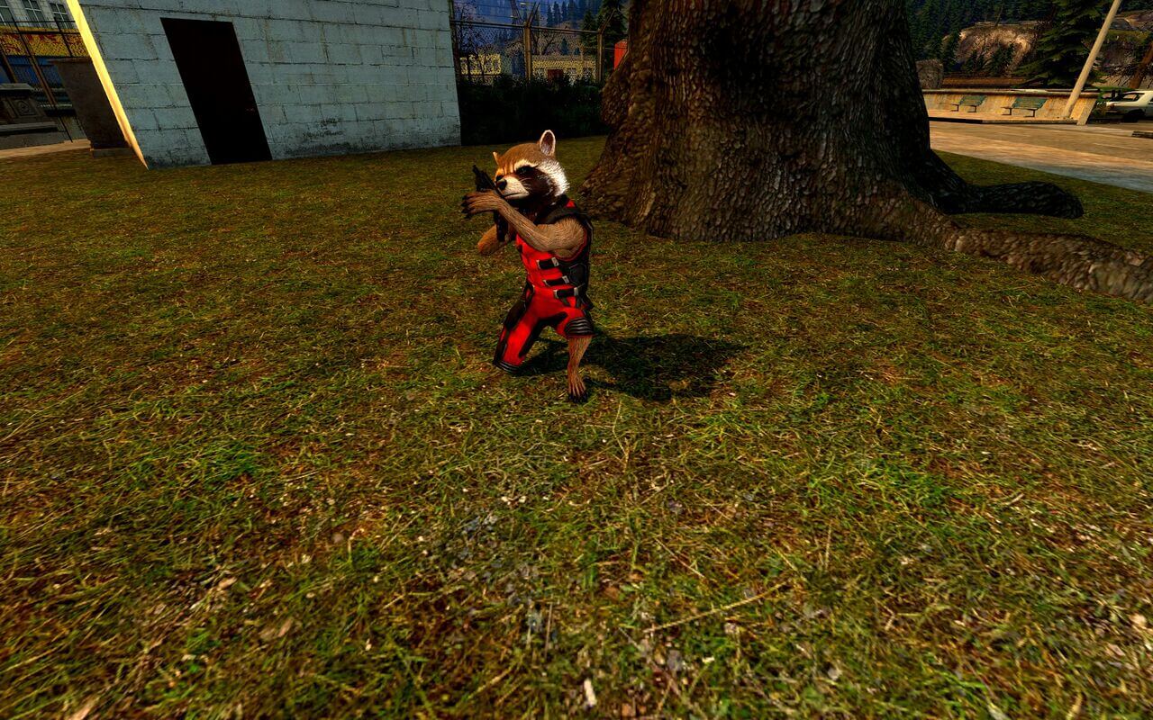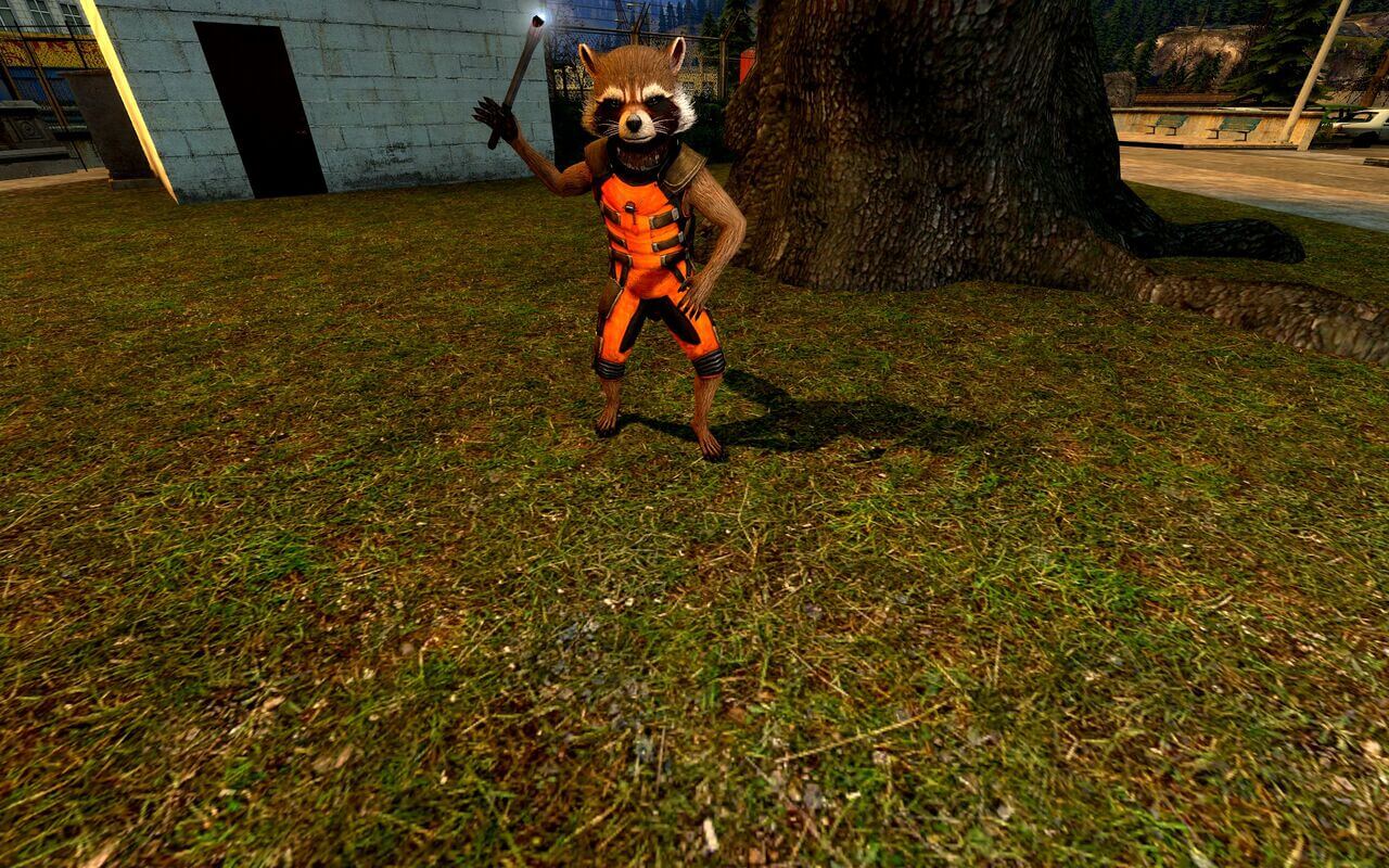 Ракета из “Стражей галактики”, который абсолютно точно не енот. Просто этому существу не очень повезло с опытами. Здесь она будет игровой моделью.