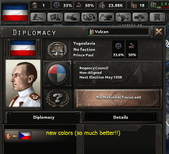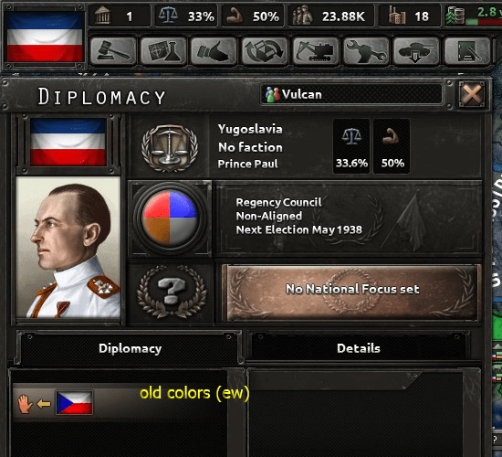 “Это простой мод, который изменяет цвета идеологий от ярких уродливых цветов в базовой игре до явно превосходящих цветов, которые я сделал. Вот и все на самом деле.”
