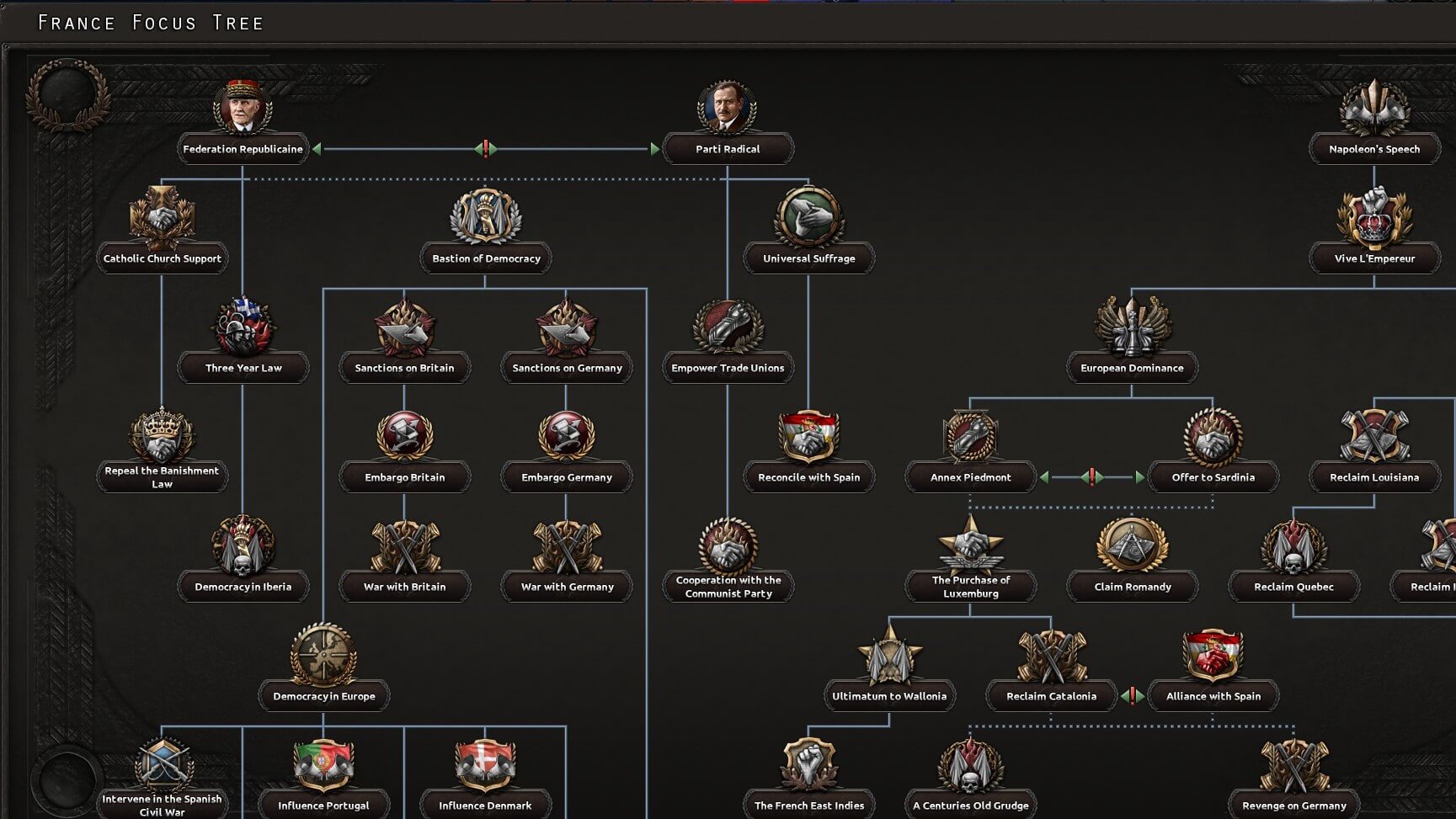 Как и в любом другом total conversion моде, здесь будут новые страны, лидеры, портреты, регионы, победные точки, фокусные деревья, события, национальные духи и др.