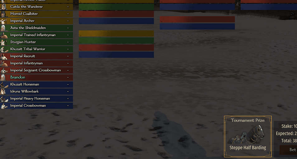 - Опыт добавляется в турнирах по стрельбе их лука, в рыцарских турнирах, а также в забегах. В боях на арене и турнирах ближнего боя опыт добавляется в Bannerlord версии e1.0.6.